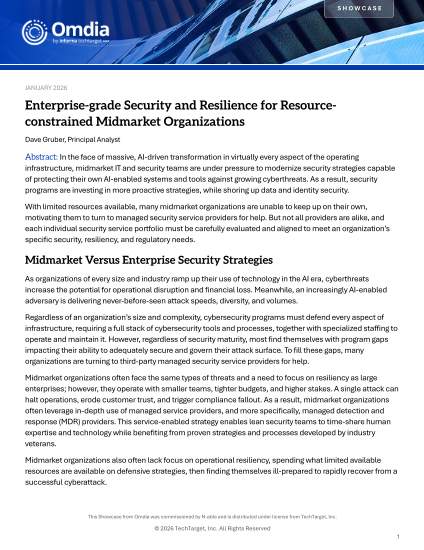 Download the latest Omdia analyst brief, Enterprise‑grade Security and Resilience for Resource‑constrained Midmarket Organizations, to discover how managed detection and response (MDR) services help midmarket organizations close security gaps, improve compliance, and recover quickly after an attack.