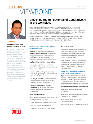 GenerativeAI (GenAI) is fundamentally transforming our ways of working and our business models and we’ve only scratched the surface when it comes to uncovering its full potential. While the overall benefits and opportunities GenAI poses may be clear, the inherent challenges and barriers to adopting these technologies are significant and should be considered prior to making investments. We connected with V. Rajanna, President of Technology, Software & Services at TCS, and Irene Zaguskin, Chief Information and Technology Officer and Partner at PwC Canada, to share their insights on this revolutionary technology.